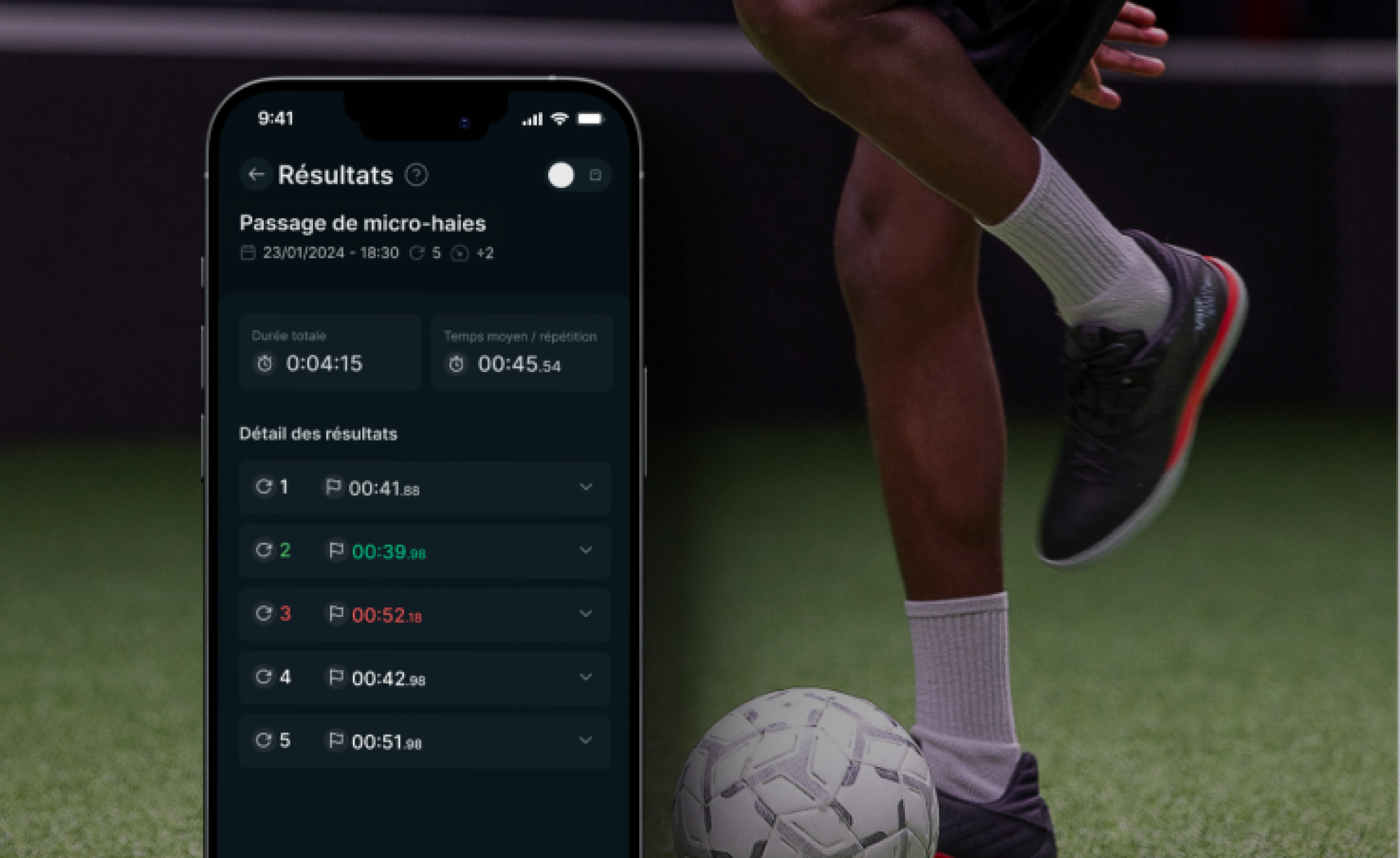 - Les temps intermédiaires durant les exercices (au millième de seconde)